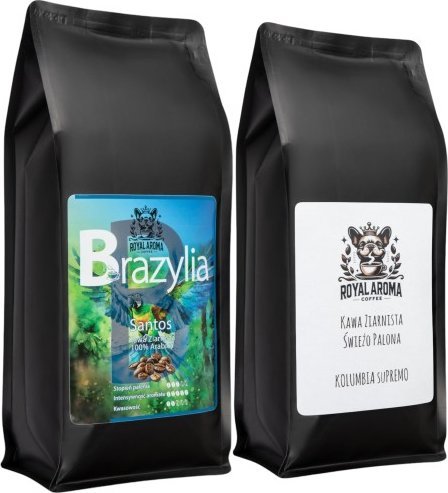 Kawa ziarnista Royal Aroma Coffee Kawa Mielona Brazylia Santos + Kolumbia Supremo 500g 2 szt. 100% Arabica Świeżo Palona Royal Aroma Coffee