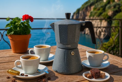 Kawiarka ciśnieniowa Silvia od marki Cookini to znakomity wybór dla entuzjastów tradycyjnego parzenia włoskiej kawy. Oferując pojemność 450 ml, pozwala na przygotowanie od 6 do 9 filiżanek aromatycznego espresso, które z pewnością zachwyci każdego smakosza. Wykonana z materiałów najwyższej jakości, ta kawiarka łączy elegancję z funkcjonalnością, co czyni ją idealnym dodatkiem do każdej kuchni.