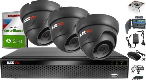 Keeyo Monitoring po skrętce Keeyo Zestaw Kompletny 1TB H265+ IR 25m 3 x kamera