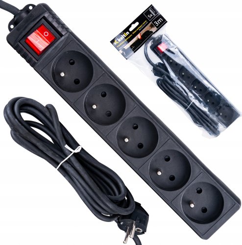 KELTIN Listwa zasilająca czarna 5 gniazd 3m (40)