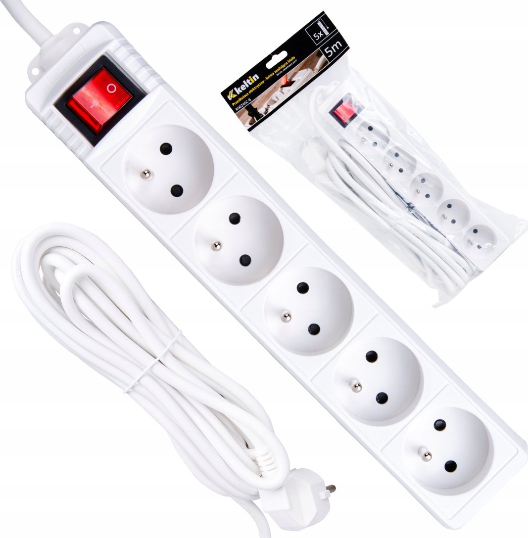 KELTIN Przedłużacz elektryczny – listwa zasilająca biała 5 gniazd 5m (40)