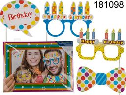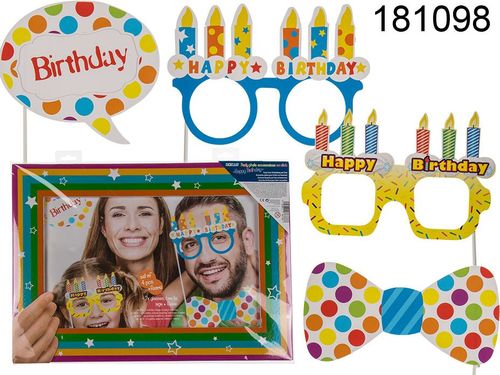 Zestaw oryginalnych ozdób umieszczonych na patyczkach przeznaczonych do pamiątkowych zdjęć w wyjątkowym Dniu Urodzin. Zestaw składa się z kolorowej ramki, dwóch par śmiesznych okularów, zabawnej muchy oraz chmurki z napisem. Dzięki tak wesołym ozdobom można wykonać naprawdę zabawne zdjęcie, które będzie wspaniałą pamiątką urodzinową. Zestaw idealnie sprawdza się na przyjęciach urodzinowych lub też na małych kameralnych uroczystościach.