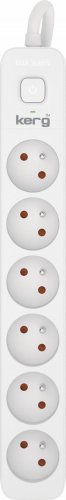 Kerg Przedłużacz KERG z wyłącznikiem-6 gniazd-biało-szary-1,5m-16A-H05VV-F-3x1,5mm2