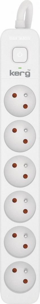 Kerg Przedłużacz KERG z wyłącznikiem-6 gniazd-biało-szary-3m-16A-H05VV-F-3x1,5mm2