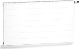 Grzejnik wyróżnia się nowoczesnym, białym wykończeniem w kolorze RAL 9016, które doskonale wkomponuje się w różnorodne aranżacje wnętrz. Płaskie profilowanie frontu sprawia, że jest nie tylko funkcjonalny, ale także estetyczny.