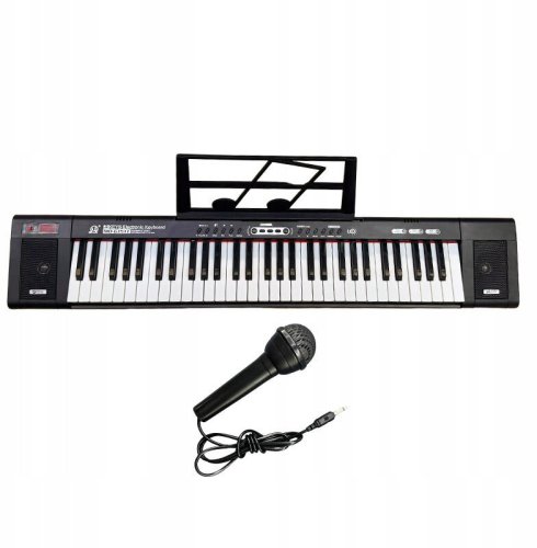 W zestawie z keyboardem znajduje się mikrofon wokalny, co umożliwia organizowanie zabaw karaoke. Instrument pozwala również na nagrywanie i odtwarzanie utworów, co jest doskonałym sposobem na ćwiczenie i odsłuch własnych kompozycji. Dzięki temu dzieci mogą rozwijać swoje umiejętności muzyczne w interaktywny sposób.