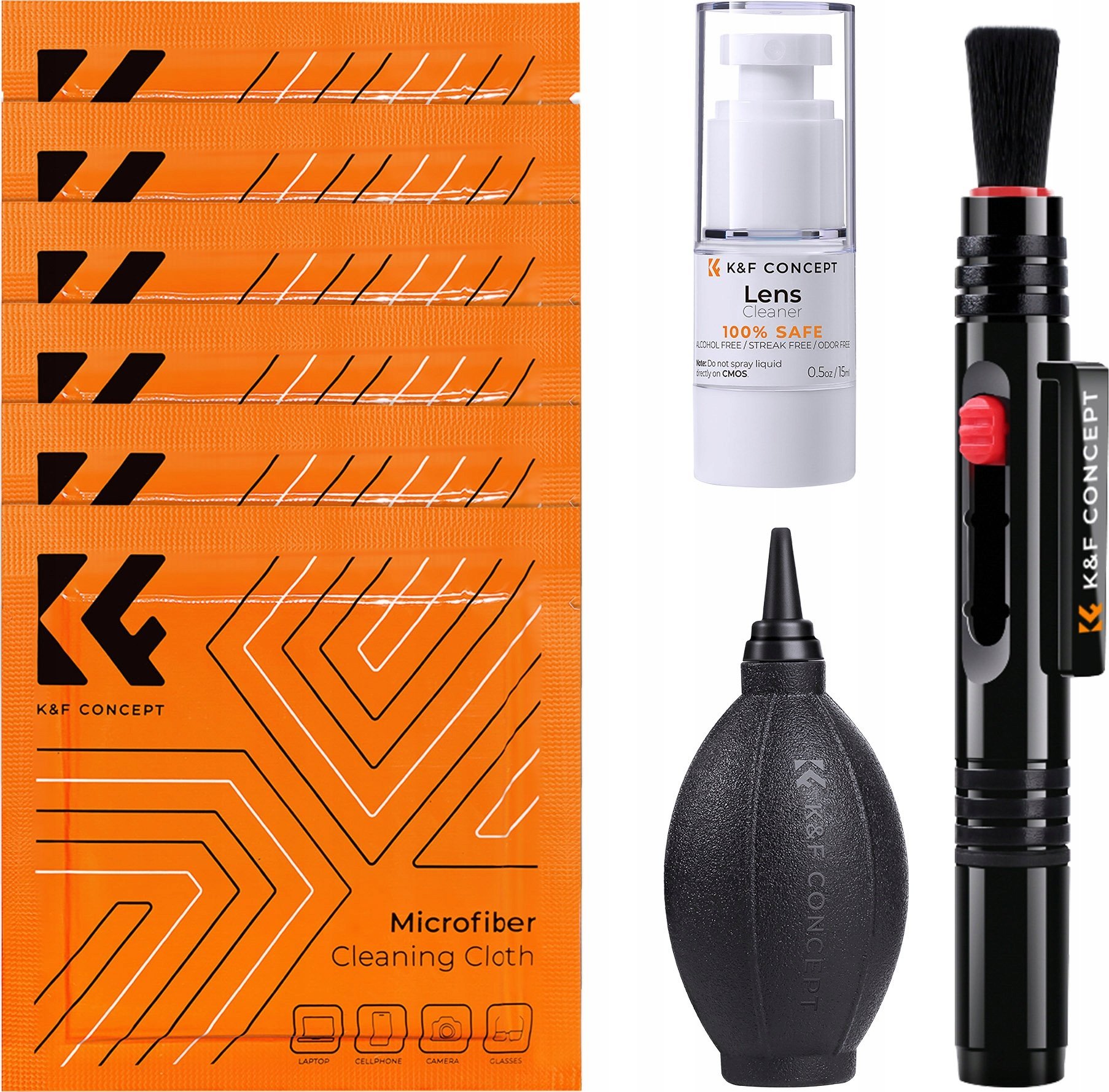 Zestaw K&F Concept Cleaning Kit 4w1 to idealny wybór dla każdego, kto chce utrzymać swój sprzęt fotograficzny, optyczny (obiektywy, filtry, lornetki, okulary) oraz ekrany (smartfony, monitory, ekrany LCD) w nienagannej kondycji. Regularne i prawidłowe czyszczenie nie tylko wpływa na jakość zdjęć i komfort pracy, ale także znacząco przedłuża żywotność drogiego sprzętu. Dzięki temu zestawowi, kurz, pyłki, odciski palców i inne zabrudzenia przestaną być problemem.