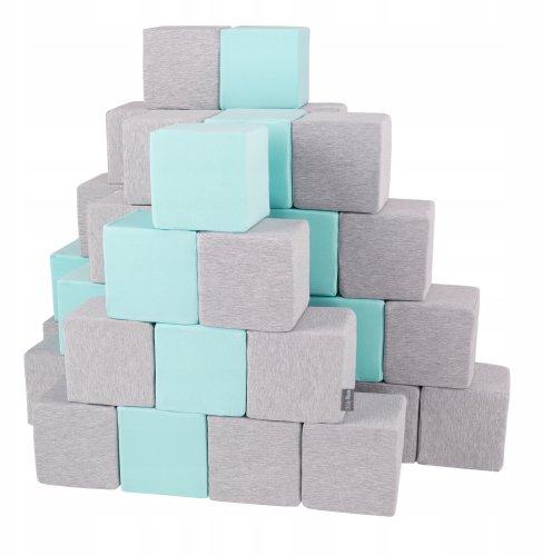 KiddyMoon Miękkie klocki 14cm sześciany: jasnoszary-miętowy 48 Zabawka klocki z pianki