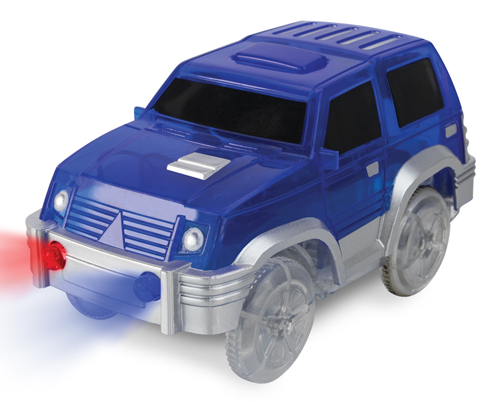 Tor jest fluorescencyjny - najefektowniej wygląda w ciemności. Gdy naświetlisz go w ciągu dnia lub pod lampą, będzie niesamowicie świecił, kiedy tylko wyłączysz światło. Magia! Samochodzik jest dodatkowo wyposażony w ledowe diody. Możesz go też ozdobić dołączonymi do zestawu naklejkami. Świetna zabawa dla całej rodziny gwarantowana!