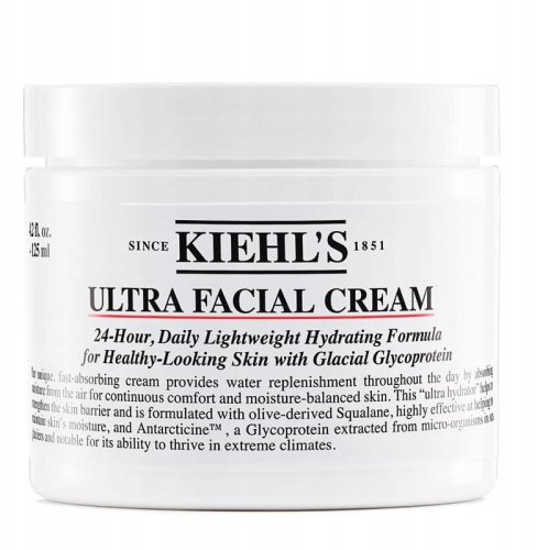W składzie Kiehl's Ultra Facial Cream znajdują się glikoproteiny z głębi lodowców oraz skwalan pochodzący z oliwek. Te aktywne składniki wspierają nawilżenie skóry, nawet w najbardziej suchych miejscach.