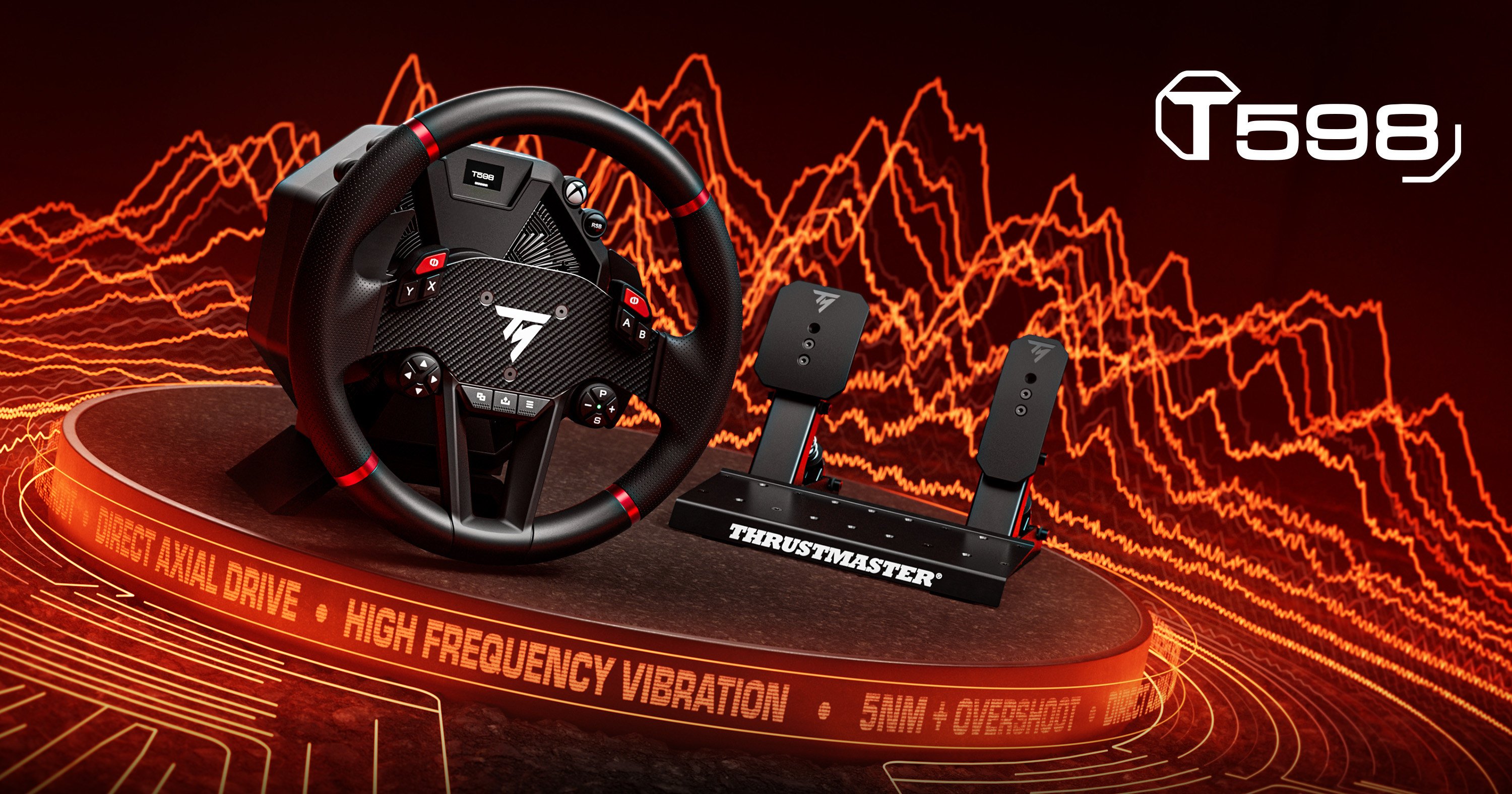 Pędź po nieznane wcześniej wrażenia wyścigowe z kierownicą T598 i jej silnikiem Direct Axial Drive, czyli nową generacją napędu Direct Drive. Zapewnia on idealne, wyraźne ruchy koła kierownicy bez pulsowania momentu obrotowego, pozwalając uzyskać bardzo wierne siłowe sprzężenie zwrotne.