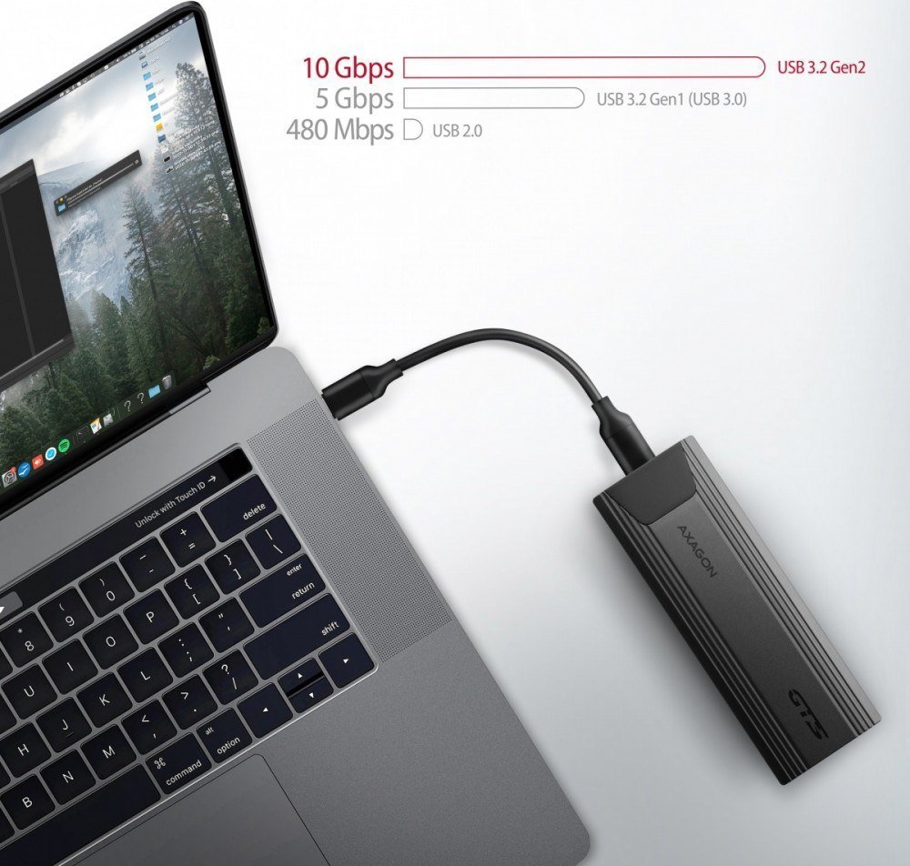 Interfejs SuperSpeed USB 10 Gbit/s pozwala na korzystanie z prędkości nowoczesnych dysków SSD M.2. Dzięki szybkiemu interfejsowi USB 3.2 Gen 2 prędkość transmisji wynosi do 10 Gb/s. Dodatkowo, boks zewnętrzny M.2 wspiera także inne nowoczesne funkcje, np. UASP oraz umożliwia odczyt informacji S.M.A.R.T. monitorujących stan dysku. Obsługa trybu standby w stanie bezczynności.