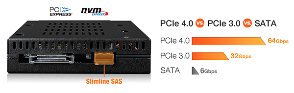 Aby umożliwić pełne wykorzystanie szybkości dysków U.2 NVMe PCIe 4.0x4 SSD MB021VP-B wyposażony został w złącze SFF-8654 umożliwiające przesył danych z prędkością do 64 Gbps przy jednoczesnej kompatybilności wstecznej z U.2 NVMe PCIe 3.0 x4 SSD.