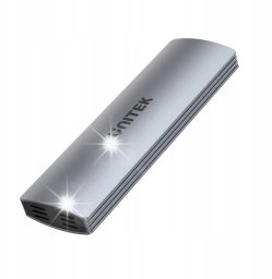 Unitek S1230A to zewnętrzna obudowa dla dysków M.2, która obsługuje zarówno interfejsy NVMe, jak i SATA. Dzięki imponującej prędkości transmisji danych sięgającej 10 Gbps, stanowi doskonałe rozwiązanie dla profesjonalistów, którzy potrzebują szybkiego przesyłania dużych plików. Jej kompaktowe wymiary sprawiają, że jest poręczna i łatwa do przenoszenia, przypominając bardziej pendrive'a niż tradycyjną obudowę na dysk.