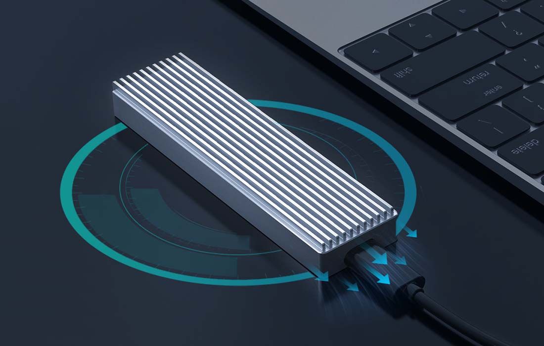 Nie musisz się obawiać, że zamontowany w obudowie dysk SSD będzie się przegrzewać. Urządzenie zostało zaprojektowane w taki sposób, aby optymalnie odprowadzać ciepło. Pozwalają na to między innymi specjalne, miedziane szyny oraz silikonowa podkładka termiczna. Co więcej, obudowę produktu wykonano z wysokiej klasy stopu aluminium.