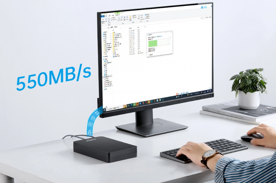 Przepustowość 6 Gbps pozwala na to, by cieszyć się szybkim dyskiem SSD, używając go do zarówno do rozrywki, jak i pracy. Standard USB3.1 z prędkością do 550 MB/s oznacza oszczędność czasu oraz brak zbędnego, przedłużającego się oczekiwania na zakończenie transferu ulubionego filmu czy albumu.