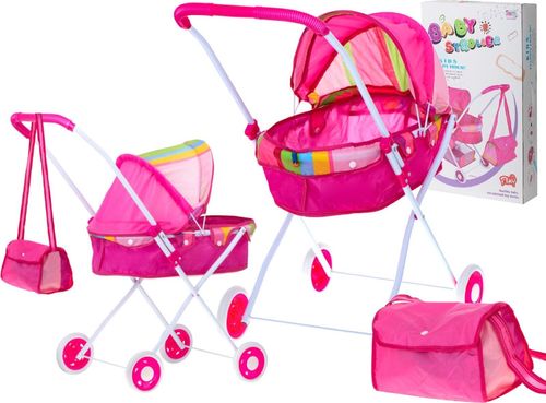 KIK Wózek dla lalek gondola z torbą różowy