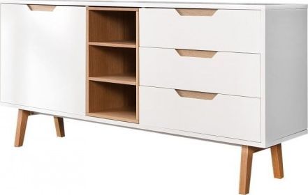King Home Komoda HUSUM biała - MDF, fornir dębowy