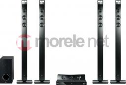 System kina domowego 5.1, składający się z jednostki centralnej, 4 głośników surround, głośnika centralnego i subwoofera. Odtwarza płyty BD 3D, BD-R, BD-RE, DVD-R, DVD-RW, DVD+R, DVD+RW, Audio CD, CD-R i CD-RW oraz obsługuje m.in. format MP3, WMA, DivX, MKV i DivX HD. Wyposażony w dekodery audio Dolby Digital, Dolby Digital Plus, DTS, DTS-HD High Resolution Audio i DTS-HD Master Audio. Dolby Digital to system cyfrowego kodowania dźwięku dookólnego na płytach DVD. Cyfrowy dźwięk dookólny oferuje wrażenia kinowe u nas w domu, dzięki sześciu kanałom dźwiękowym o jakości płyty CD. Każdy z kanałów przekazuje osobny dźwięk w zależności od kierunku z którego ma on dochodzić tak, by odpowiadał najwierniej aktualnie oglądanej scenie. Przedni głośnik lewy, centralny oraz prawy wraz z tylnymi odtwarzają tony wysokie, średnie oraz basowe poprzez 5 pełnozakresowych kanałów dźwięku dookólnego. Basy, eksplozje oraz drgania które odczuwamy są przekazywane poprzez szósty kanał przeznaczony dla subwoofer-a. Zestaw posiada tuner AM/FM z pamięcią na 50 stacji, złącza HDMI, USB 2.0, Component Video, wejście optyczne audio i RJ-45.Pliki do pobrania: