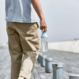 Butelka KINTO TO GO jest lekka i poręczna, co czyni ją idealnym towarzyszem w podróży, na spacerach czy podczas treningów. Jej wymiary (średnica 78 mm i wysokość 240 mm) sprawiają, że łatwo zmieści się w torbie lub plecaku, a waga około 245 g nie obciąży dodatkowo bagażu.