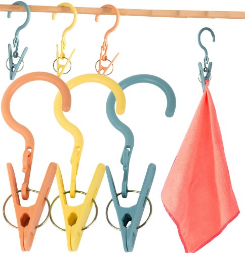 ✅ Dzięki specjalnemu haczykowi zawiesisz je tam, gdzie standardowa klamerka nie da rady – na pręcie, balustradzie, sznurze w ogrodzie czy gałęzi drzewa.