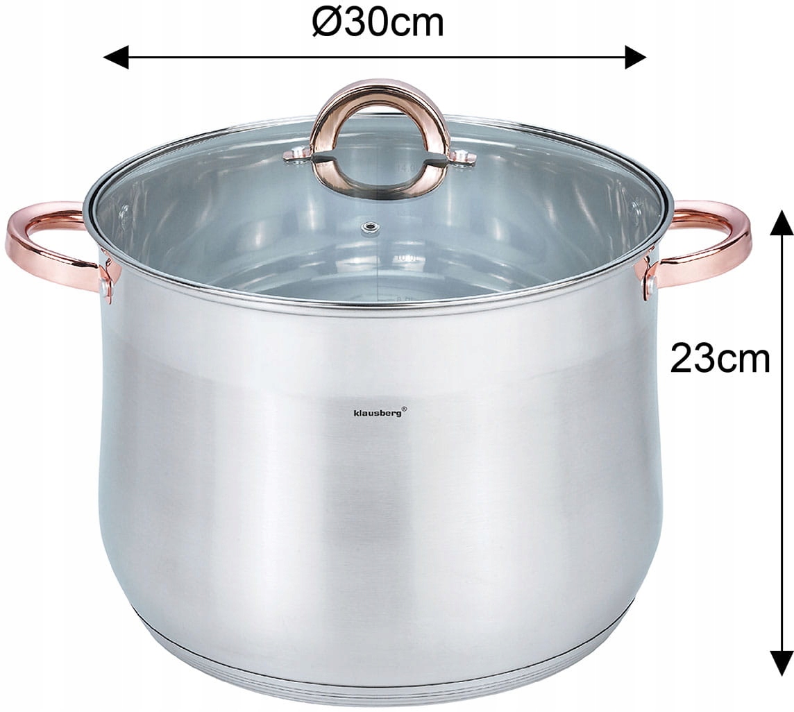 Duży stalowy garnek gastronomiczny 16L 30cm w kolorze różowego złota KLAUSBERG KB-7796