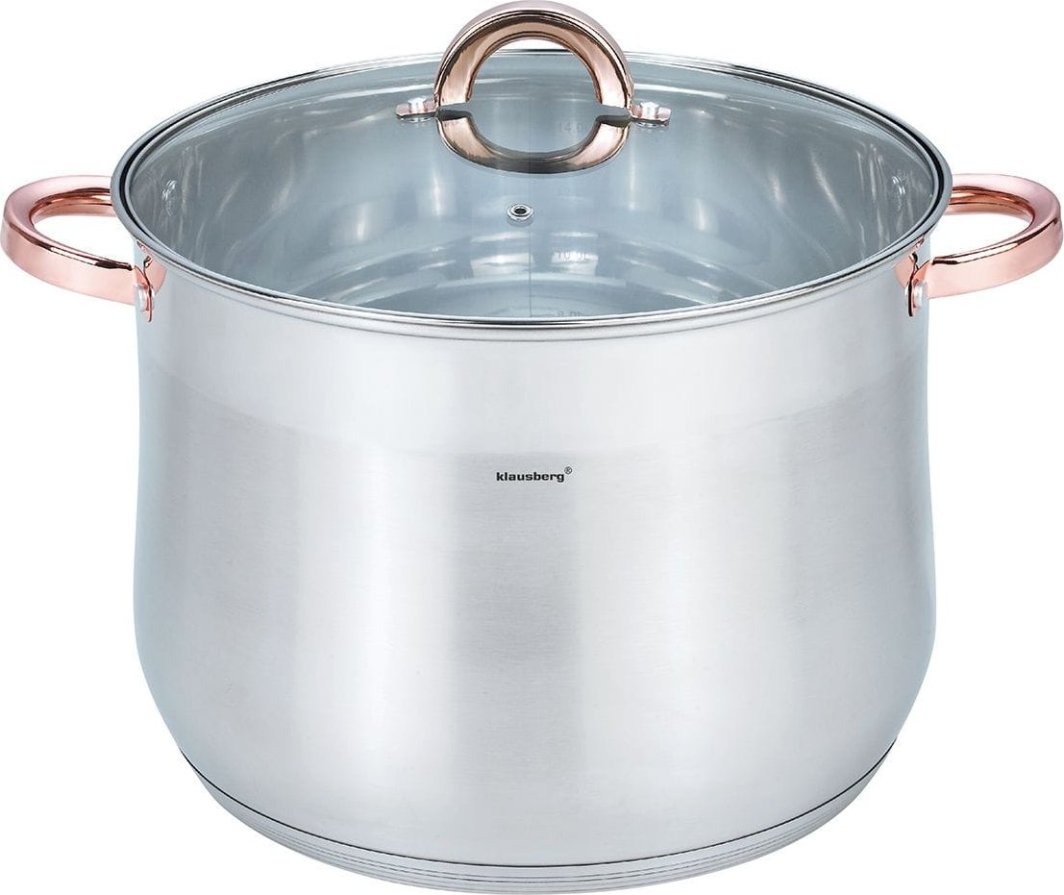 Garnek kuchenny 16L 30cm z pokrywką ze szkła i uchwytami w kolorze różowego złota marki KLAUSBERG.