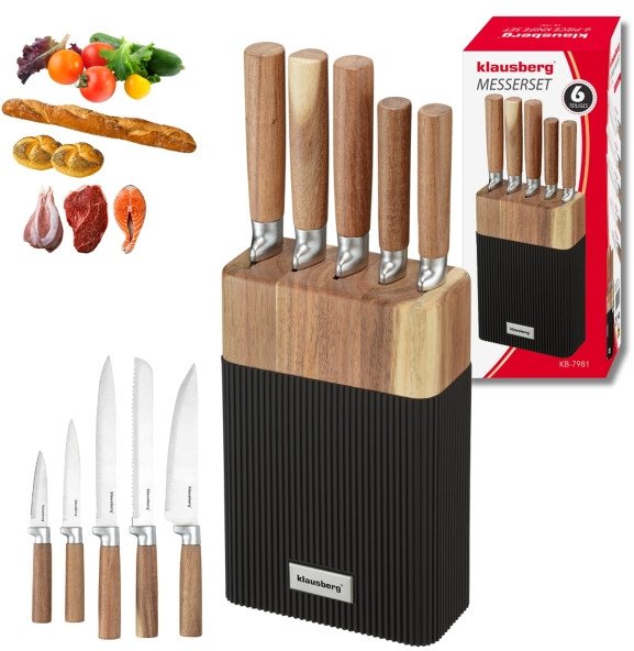 Klausberg ZESTAW NOŻY W BLOKU AKACJOWYM KB-7981