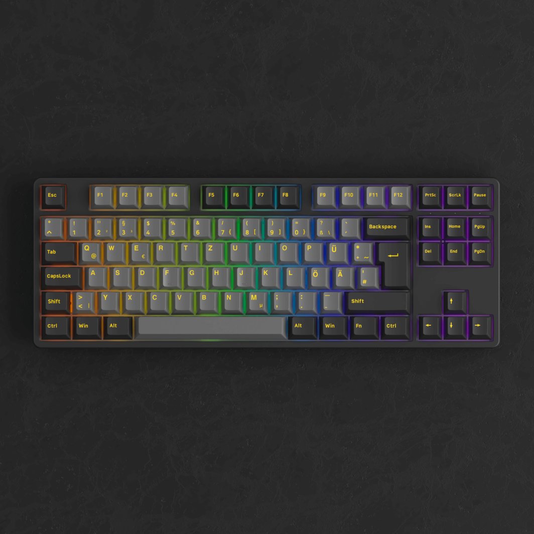 Układ ISO DE klawiatury Akko Black & Gold 5087S zapewnia komfort użytkowania, zwłaszcza dla osób przyzwyczajonych do tego standardu. Dzięki 87 klawiszom, klawiatura zajmuje mniej miejsca na biurku, co sprzyja lepszej organizacji przestrzeni roboczej.