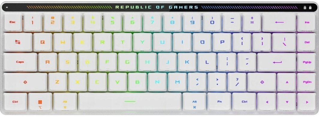 Mierząca zaledwie 306 mm długości klawiatura ROG Falchion RX Low Profile to mistrzowskie połączenie układu 65% z ramą o rozmiarze 60%. Dzięki smukłemu profilowi o grubości 26,5 mm i kompaktowym wymiarom można uwolnić więcej miejsca na biurku dla ręki sterującej myszką.