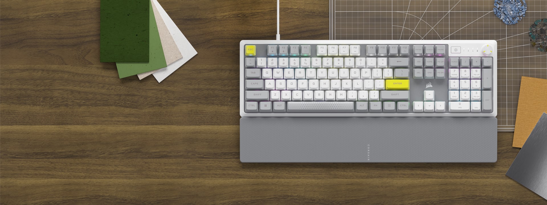 Klawiatura oferuje wygodne i szybkie sterowanie multimediami dzięki dedykowanemu pokrętłu. Możesz łatwo regulować głośność, jasność podświetlenia lub przypisać mu inne funkcje za pomocą oprogramowania iCUE. Indywidualne podświetlenie RGB każdego klawisza pozwala na pełną personalizację kolorów, tworzenie złożonych efektów świetlnych i synchronizację z całym zestawem urządzeń CORSAIR, co dodaje Twojemu stanowisku gamingowego charakteru.
