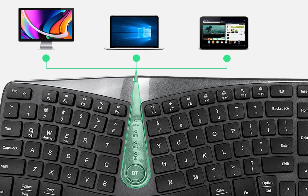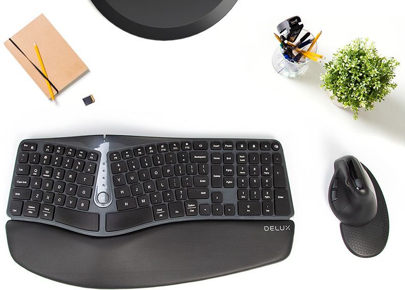 Spędzasz dużo czasu przy komputerze? Zadbaj o swoje zdrowie i wygodę! Bezprzewodowa klawiatura Delux GM901D charakteryzuje się ergonomicznym designem, dzięki czemu zapewnia niezrównany komfort użytkowania. Została wyposażona w 107 klawiszy i specjalną podpórkę pod nadgarstki. Możesz połączyć ją nawet z 3 urządzeniami za pomocą Bluetooth 3.0, Bluetooth 5.0 i w paśmie 2.4G. Ma także praktyczne klawisze funkcyjne.