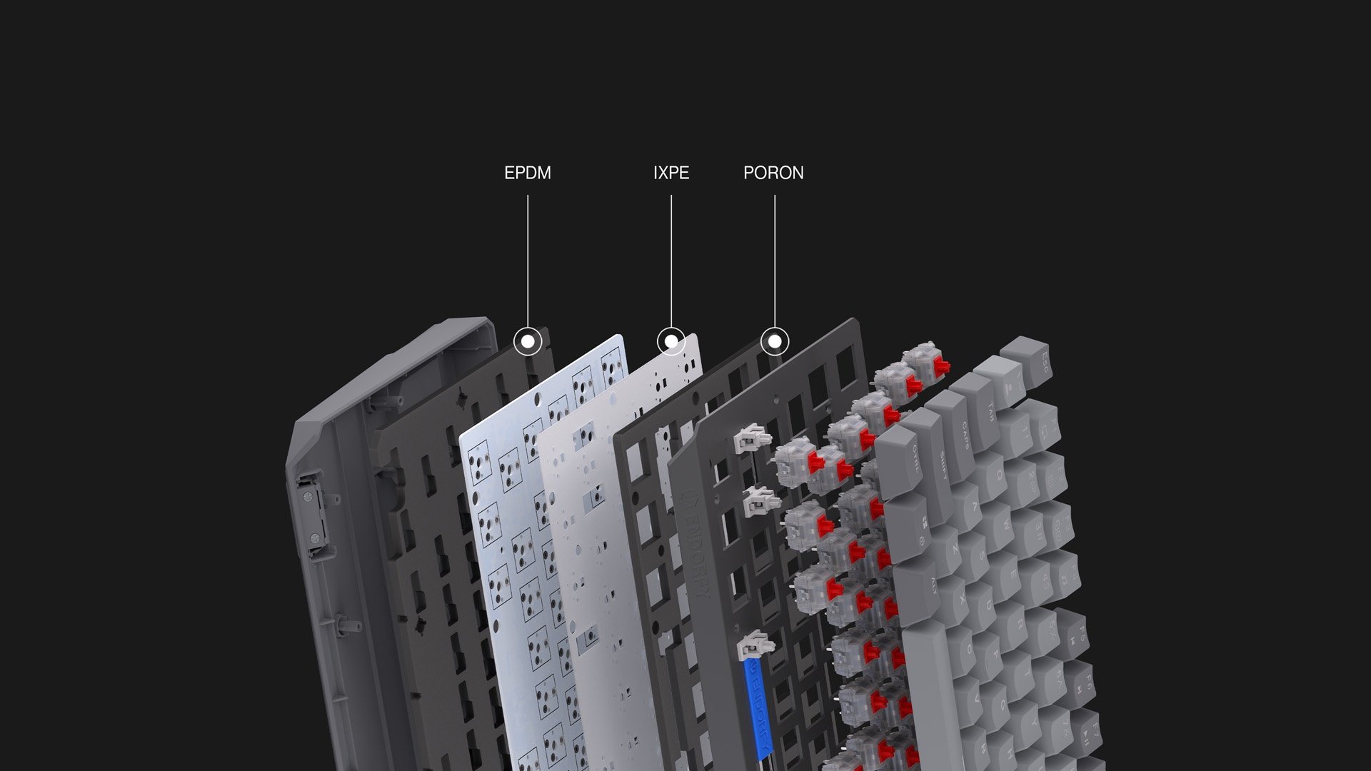 Thock V2 75% został wyposażony w inspirowane ekskluzywnymi ENDORFY Yellow, mechaniczne przełączniki linearne ENDORFY Red – szybkie i reponsywne, stworzone z myślą o graczach. Wykonana z mlecznego materiału obudowa dobrze doprowadza światło do keycapa, a fabrycznie smarowana konstrukcja z nylonową podstawą zapewnia płynny „travel”, który akcentuje głęboki, wyraźny dźwięk.