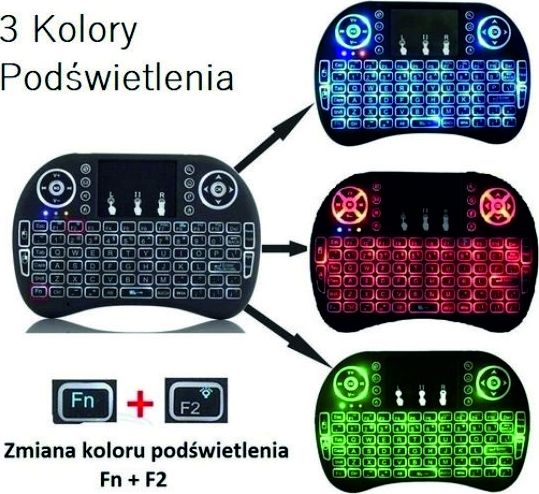 - Klawiatura smart TV I8 to wielofunkcyjna, podświetlana, nowoczesna mini klawiatura QWERTY z funkcją myszki (wbudowany panel dotykowy touchpad obsługujący gesty).