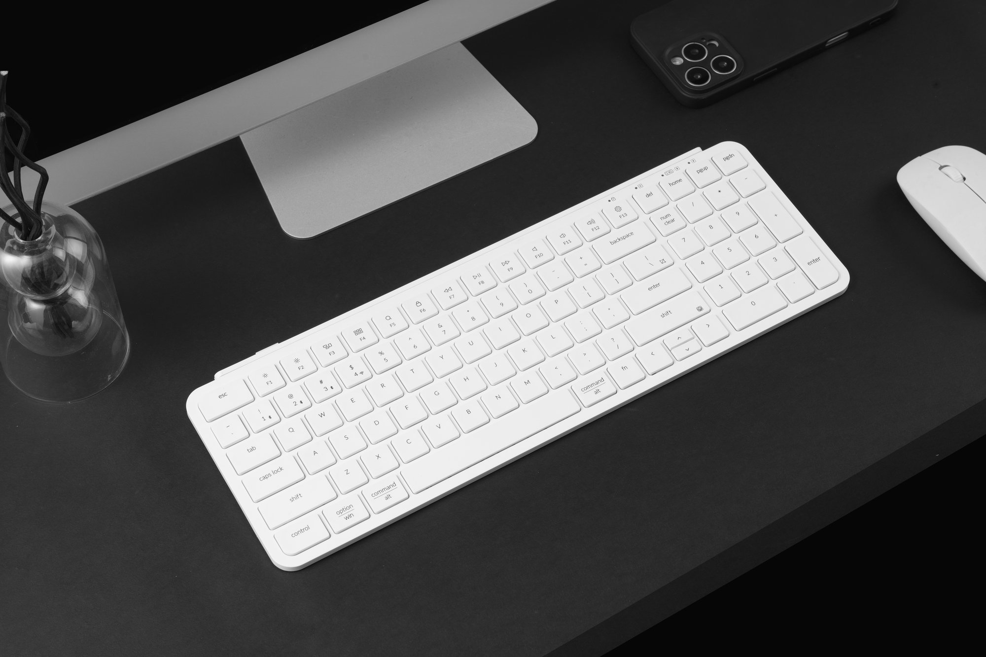 Keychron B2P-K8 w białej wersji kolorystycznej to smukła, bezprzewodowa klawiatura w układzie 96%, która oferuje pełny blok numeryczny w bardziej kompaktowej formie. Model obsługuje trzy sposoby połączenia: 2.4 GHz z polling rate 1000 Hz, Bluetooth 5.2 oraz przewodowo przez USB-C (Universal Serial Bus Type-C), co zapewnia elastyczność pracy na wielu urządzeniach. Wbudowana bateria 800 mAh pozwala na nawet 300 godzin działania na jednym ładowaniu, ograniczając konieczność częstego podłączania do zasilania. Minimalistyczny design, cienka konstrukcja oraz stabilna obudowa sprawiają, że klawiatura doskonale sprawdzi się w biurze, podczas pracy zdalnej i w codziennym użytkowaniu.