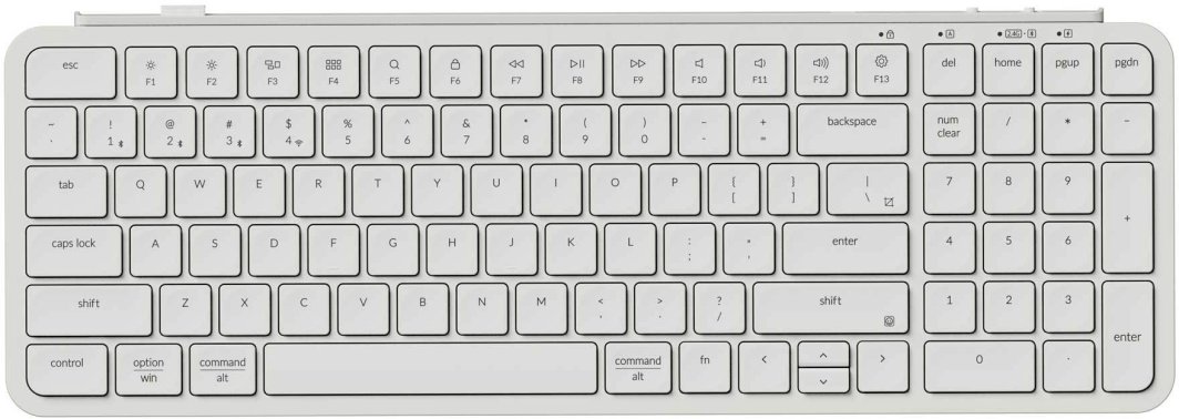 Keychron B2P-K8 w białej wersji kolorystycznej to smukła, bezprzewodowa klawiatura w układzie 96%, która oferuje pełny blok numeryczny w bardziej kompaktowej formie. Model obsługuje trzy sposoby połączenia: 2.4 GHz z polling rate 1000 Hz, Bluetooth 5.2 oraz przewodowo przez USB-C (Universal Serial Bus Type-C), co zapewnia elastyczność pracy na wielu urządzeniach. Wbudowana bateria 800 mAh pozwala na nawet 300 godzin działania na jednym ładowaniu, ograniczając konieczność częstego podłączania do zasilania. Minimalistyczny design, cienka konstrukcja oraz stabilna obudowa sprawiają, że klawiatura doskonale sprawdzi się w biurze, podczas pracy zdalnej i w codziennym użytkowaniu.