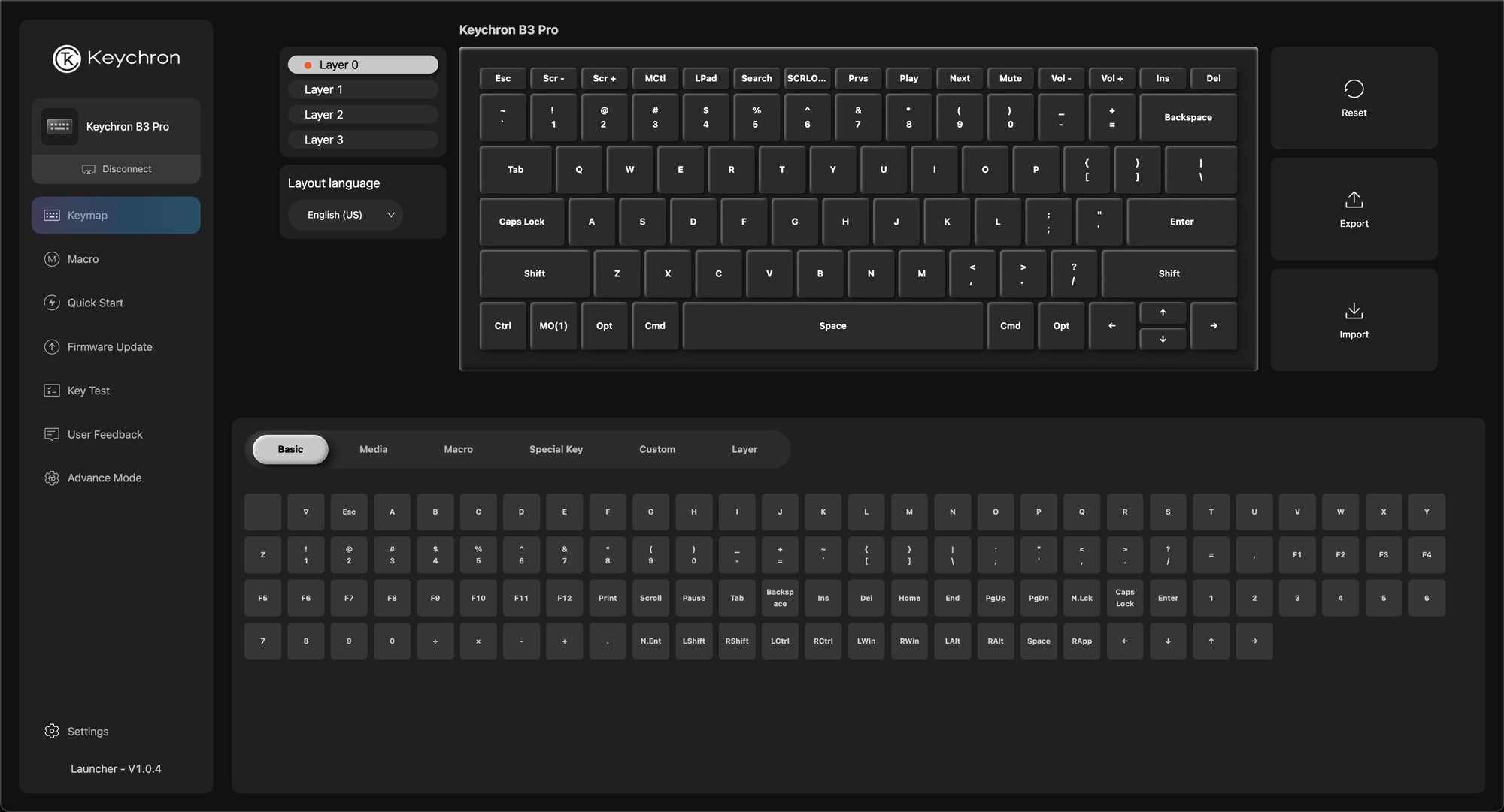 Układ 75% umożliwia oszczędność miejsca na biurku bez rezygnacji z kluczowych funkcji. Niski profil oraz kąt nachylenia 2,8° sprzyjają naturalnemu ułożeniu dłoni i pomagają ograniczyć zmęczenie przy długim pisaniu. Obudowa z tworzywa ABS jest lekka, a jednocześnie stabilna podczas codziennego użytkowania. Konfigurację klawiszy, makr i skrótów umożliwia webowa aplikacja Keychron Launcher, dostępna bez konieczności instalowania dodatkowego oprogramowania.