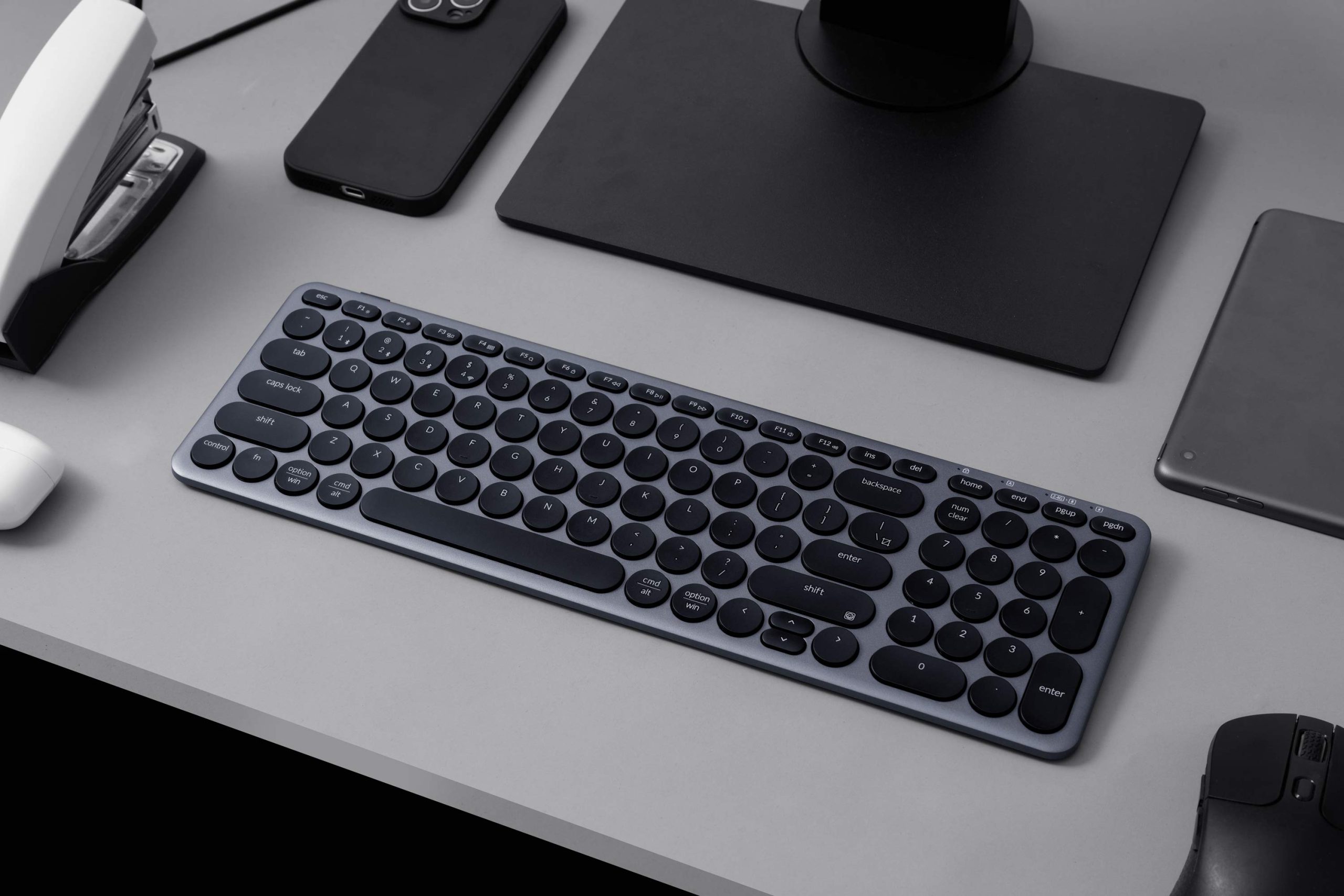 Układ 96% zachowuje blok numeryczny i rząd klawiszy funkcyjnych, jednocześnie zajmując mniej miejsca niż tradycyjna klawiatura pełnowymiarowa. Smukła konstrukcja oraz kąt nachylenia 2,9° wspierają komfortowe ułożenie dłoni podczas długiego pisania. Obudowa wykonana z tworzywa ABS jest lekka, a zarazem stabilna, co zapewnia pewność podczas codziennej pracy. Personalizację klawiszy, skrótów i makr umożliwia webowa aplikacja Keychron Launcher, dostępna bez konieczności instalowania dodatkowego oprogramowania.