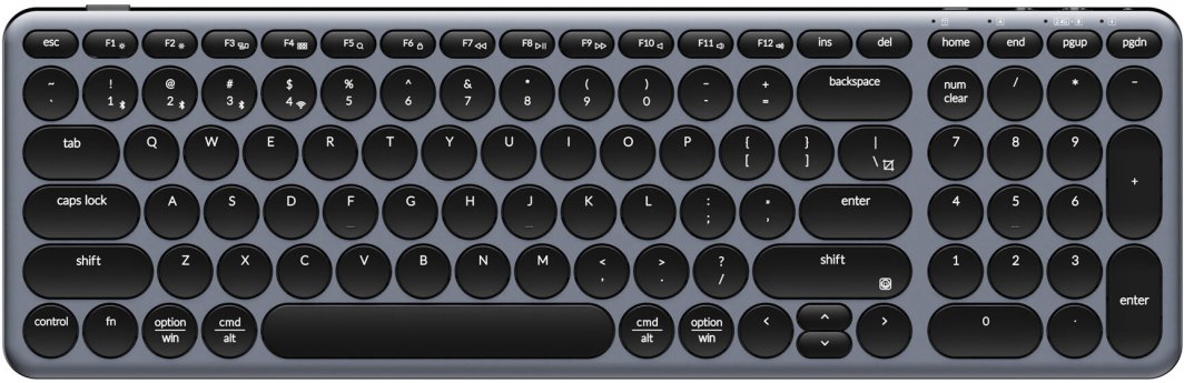 Keychron B4P-K1 w eleganckim szarym kolorze to smukła, bezprzewodowa klawiatura w układzie 96%, która łączy kompaktową konstrukcję z obecnością pełnego bloku numerycznego. Model oferuje trzy sposoby połączenia: 2.4 GHz z polling rate 1000 Hz, Bluetooth 5.2 oraz przewodowo przez USB-C (Universal Serial Bus Type-C), zapewniając wygodę pracy na różnych urządzeniach. Wbudowany akumulator 800 mAh umożliwia nawet do 300 godzin działania na jednym ładowaniu, a z klawiatury można korzystać również w trakcie ładowania. Niska waga, cienki profil oraz minimalistyczne, szare wykończenie sprawiają, że to praktyczne i estetyczne rozwiązanie do biura, home office i codziennego użytkowania.