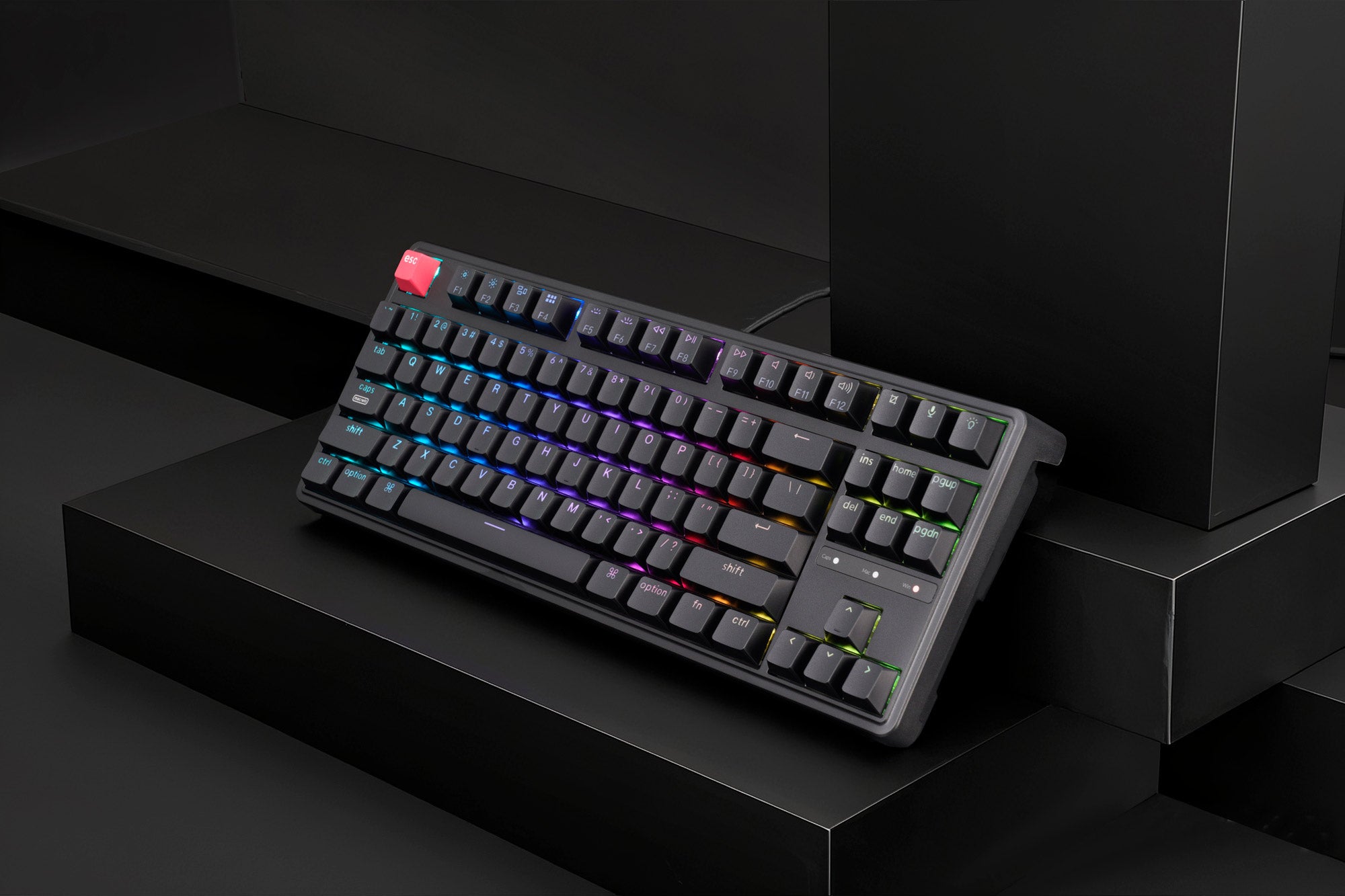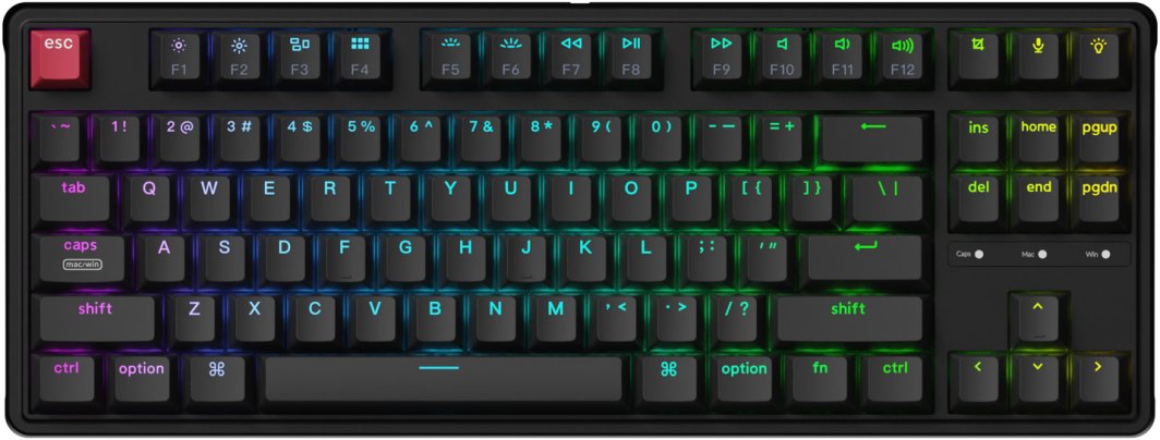 Keychron C3 Pro 8K to przewodowa klawiatura mechaniczna w układzie TKL (Tenkeyless), zaprojektowana jako wydajne i konfigurowalne narzędzie do pracy oraz rozrywki. Model łączy kompaktową formę z wysoką częstotliwością odświeżania, obsługą firmware QMK (Quantum Mechanical Keyboard) oraz funkcją hot-swap, umożliwiającą dostosowanie przełączników bez lutowania. Konstrukcja została uzupełniona o wielowarstwowe tłumienie akustyczne oraz podświetlenie RGB (Red Green Blue), co wpływa zarówno na komfort użytkowania, jak i czytelność klawiszy. Brak bloku numerycznego ułatwia ergonomiczne ustawienie myszy, a pełny rząd klawiszy funkcyjnych i sekcja nawigacyjna pozwalają zachować funkcjonalność potrzebną w codziennym użytkowaniu.