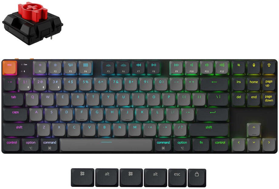 Klawiatura w formacie 80% (Tenkeyless) zajmuje mniej miejsca na biurku, co jest idealnym rozwiązaniem dla osób z ograniczoną przestrzenią. Mimo kompaktowych wymiarów, klawiatura nie traci na funkcjonalności, oferując pełną gamę klawiszy potrzebnych do komfortowego użytkowania.