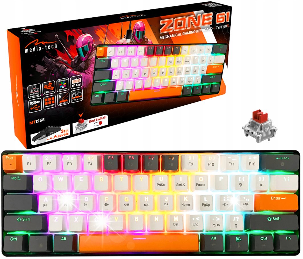 Klawiatura Klawiatura mechaniczna Media-Tech ZONE 61 MT1258 Przełączniki RED układ 60%