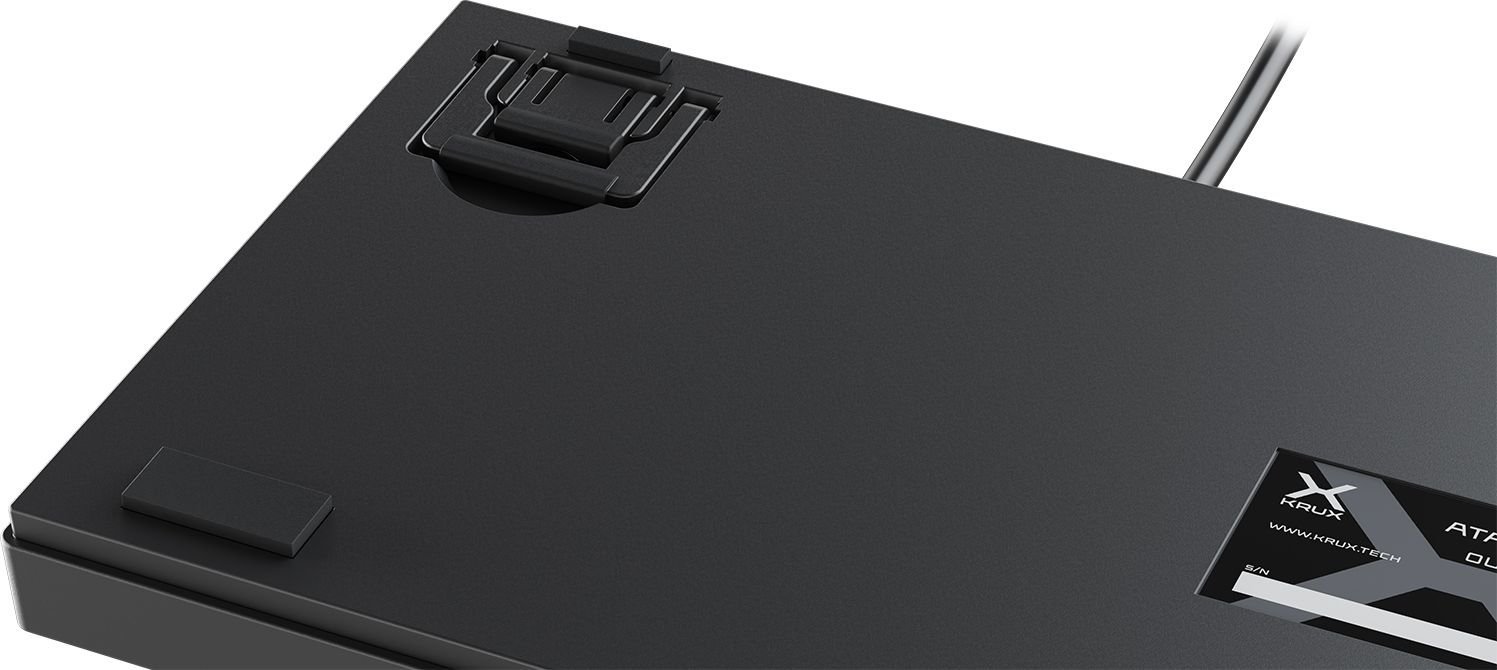 Klawiatura mechaniczna TKL KRUX ATAX PRO RGB Pudding została wyposażona w kilka dodatkowych elementów które usprawniają gamingowe doznania oraz pozwalają skonfigurować ją pod użytkownika. Gumowe powierzchnie zapewniają stabilną pozycję, nawet podczas bardzo nerwowej rozgrywki. Nóżki z dwustopniową regulacją pozwalają na ustawienie trzech różnych wysokości oraz kątów w zależności od preferencji użytkownika i typu zadania które jest wykonywane w danym momencie.