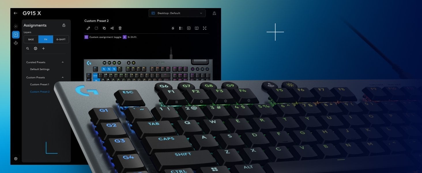 Z płaskoprofilową klawiaturą do gier G915 X, korzystasz z najnowszych technologii oraz starannie wykonanej konstrukcji i materiałów wysokiej jakości. Funkcja KEYCONTROL, która pozwala na przypisanie do 15 funkcji na klawisz, wprowadza innowacyjne rozwiązania w branży. Przełączniki GL o niskim profilu umożliwiają osiągnięcie wyższej liczby APM, co zwiększa prędkość działania.