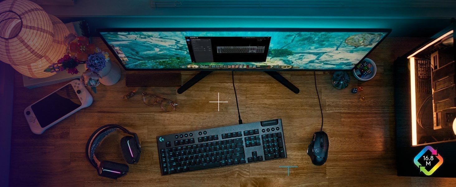 Stwórz wyjątkowe efekty świetlne z technologią LIGHTSYNC RGB, która oferuje około 16,8 miliona kolorów. Personalizuj motywy i synchronizuj ustawienia sprzętu za pomocą G HUB, aby odkryć pełnię kreatywności i głęboko zanurzyć się w świat gry.