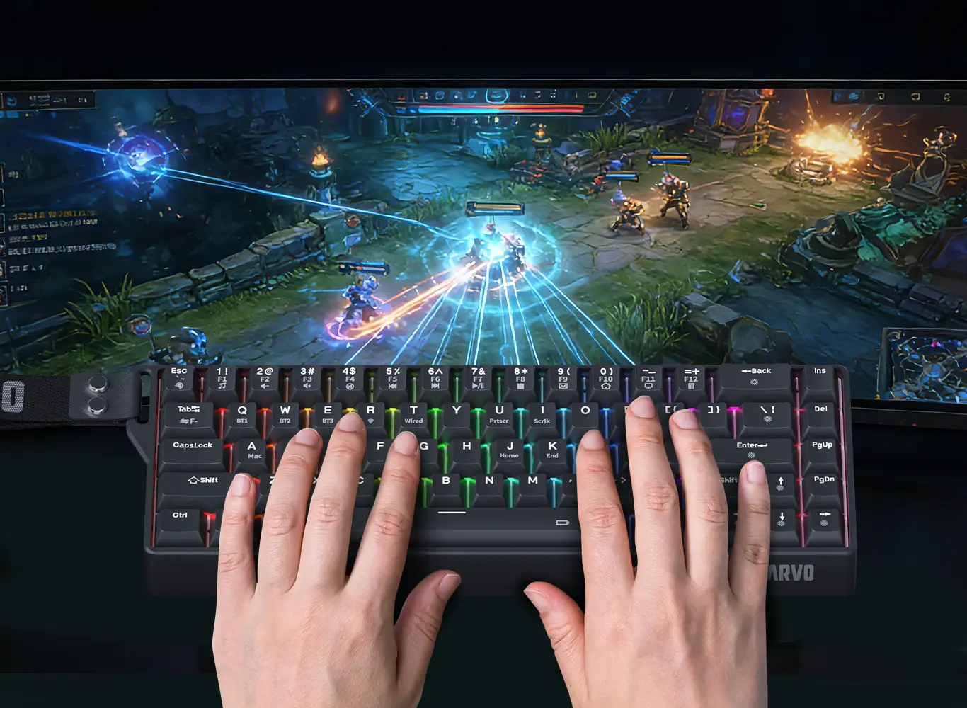 Kompaktowy układ 65% zwalnia cenne miejsce na biurku, jednocześnie utrzymując niezbędne klawisze w zasięgu ręki. Ta opływowa konstrukcja poprawia ruch myszy i tworzy czystszą, bardziej wydajną konfigurację do gier - idealną zarówno do rywalizacji, jak i codziennego użytku.