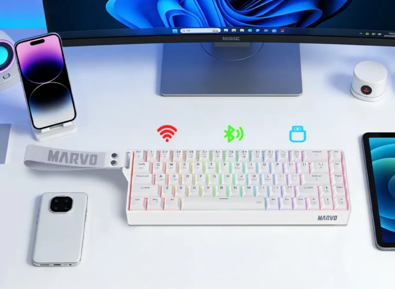 Saber 65W obsługuje trzy tryby połączenia - bezprzewodowy 2.4G, Bluetooth 5.3 i przewodowy USB - dając Ci pełną swobodę przełączania się między urządzeniami i platformami. Niezależnie od tego, czy grasz na komputerze, pracujesz na laptopie, czy łączysz się z wieloma urządzeniami, płynna łączność jest zawsze na wyciągnięcie ręki.