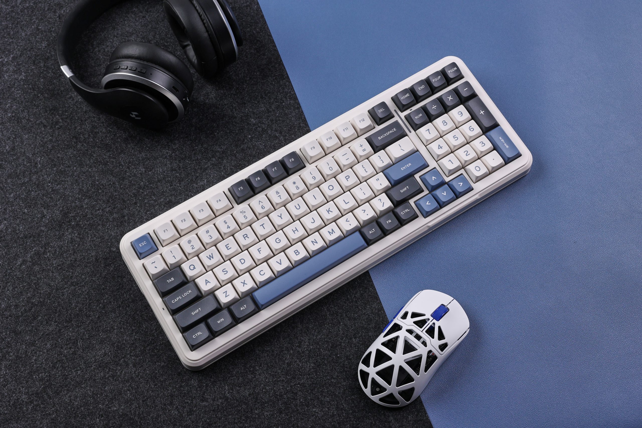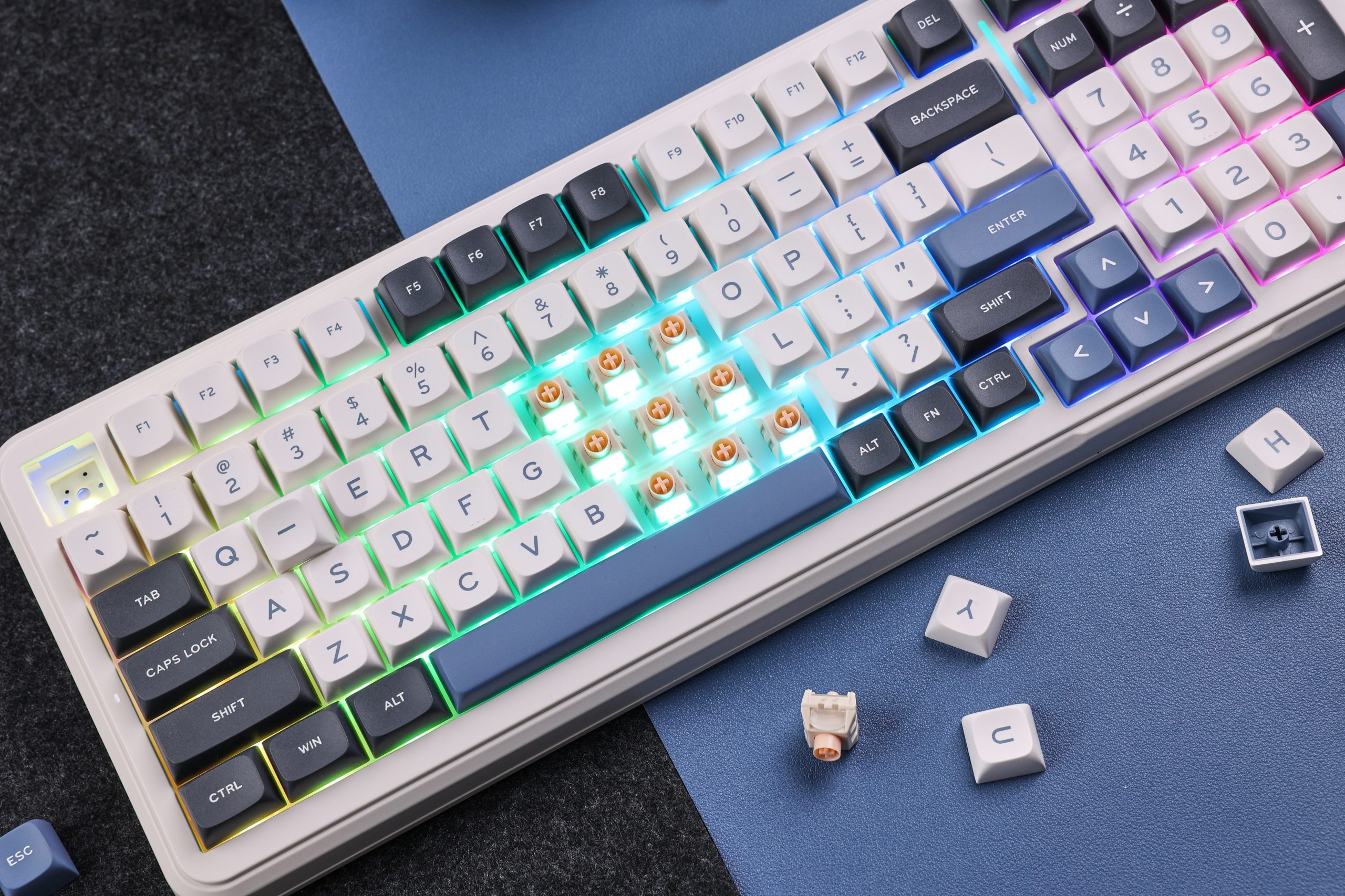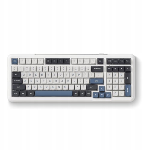 MCHOSE K99 to bezprzewodowa klawiatura mechaniczna z 99 klawiszami w kompaktowym układzie 98%, łącząca wygodę użytkowania z zaawansowaną technologią i nowoczesnym wyglądem. Dzięki konstrukcji Gasket Mount, sześciowarstwowej izolacji akustycznej oraz precyzyjnym przełącznikom liniowym Hyacinth, zapewnia płynną, cichą i wyważoną pracę. Wykończenie w kolorze Navy Blue, połyskliwy tylny obciążnik oraz efektowne podświetlenie RGB dookoła klawiatury sprawiają, że K99 przyciąga wzrok i doskonale prezentuje się w każdej przestrzeni roboczej.