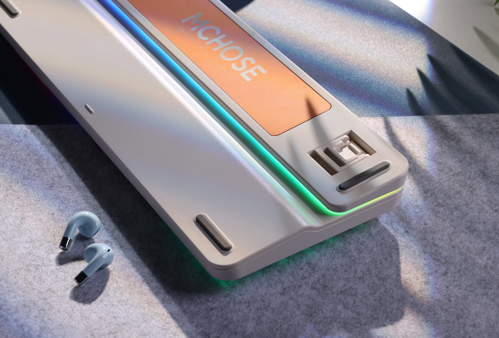 Wbudowana bateria 8000 mAh umożliwia do 69 godzin pracy z włączonym podświetleniem RGB lub nawet do 727 godzin bez efektów świetlnych. Łączność tri-mode pozwala wygodnie przełączać się między trzema urządzeniami, niezależnie od używanego systemu operacyjnego. Podświetlenie per-key RGB z paletą 16.8 mln kolorów oraz listwa Surround RGB pozwalają stworzyć w pełni spersonalizowane efekty świetlne. Obsługa MCHOSE Hub oraz Web Driver umożliwia mapowanie klawiszy, tworzenie makr i dostosowanie ustawień do własnych potrzeb.