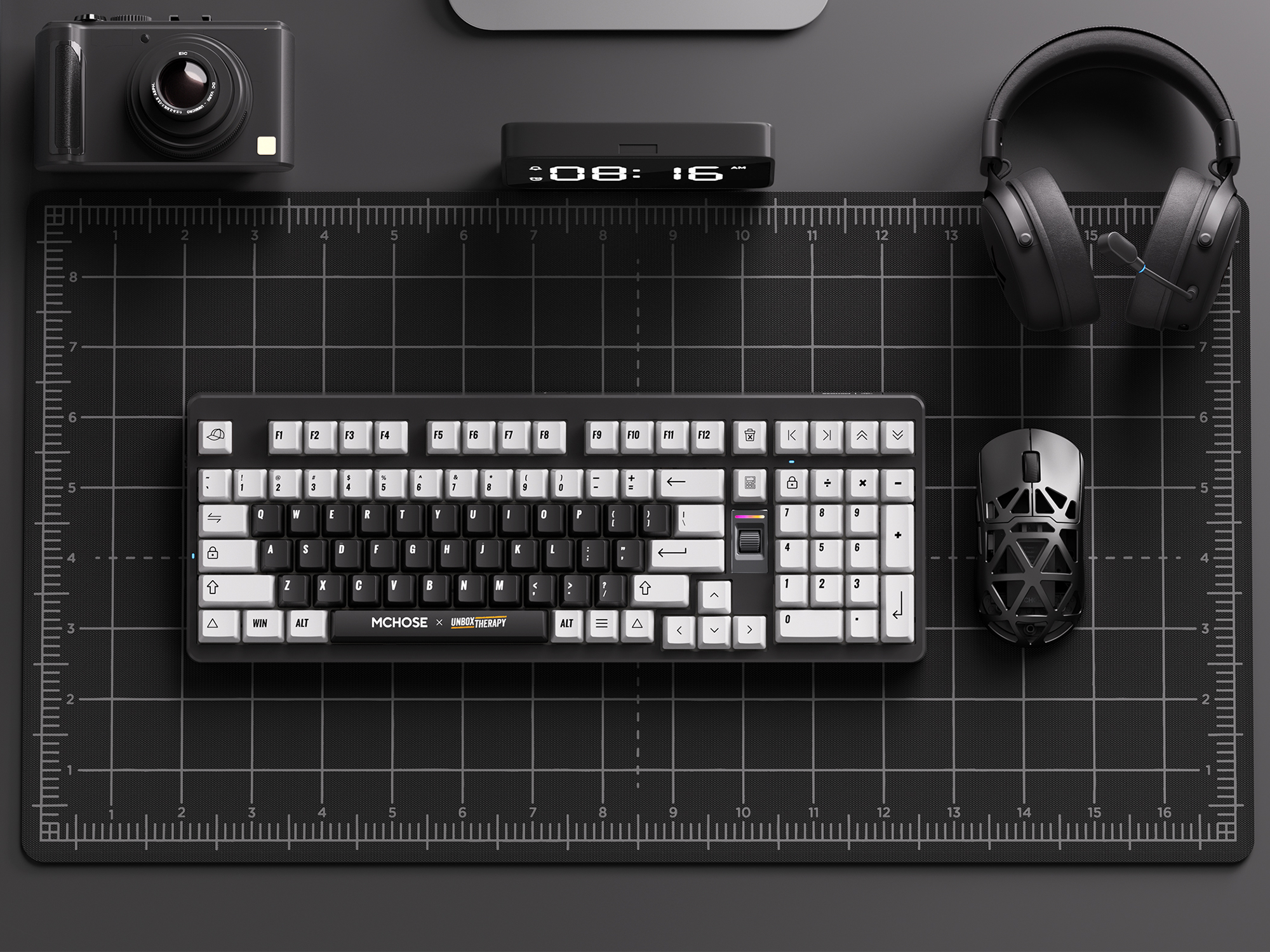 MCHOSE UT98 to niezwykle dopracowana klawiatura mechaniczna o układzie 98%, stworzona we współpracy z zespołem Unbox Therapy w eleganckiej wersji Classic Therapy. Wyposażona w liniowe przełączniki Icy Creamsicle, oferuje delikatne, przyjemne brzmienie oraz wysoką precyzję pisania bez nadmiernego hałasu. Konstrukcja oparta na gasket mount oraz pięciowarstwowym systemie tłumienia sprawia, że każdy klawisz pracuje miękko, stabilnie i wyjątkowo cicho. Mocna bateria 10 000 mAh, efektowne podświetlenie RGB i rozbudowane możliwości konfiguracji poprzez MCHOSE HUB czynią z UT98 nowoczesne narzędzie stworzone do pracy, tworzenia i rozrywki.